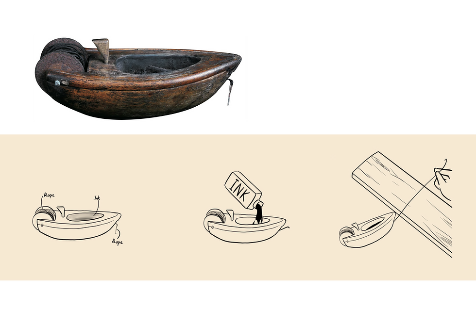 Rope Ink is a traditional Chinese woodworking tool which consist of a rope and an ink box, and it is used to draw long straight lines by pulling out its ink-soaked rope.